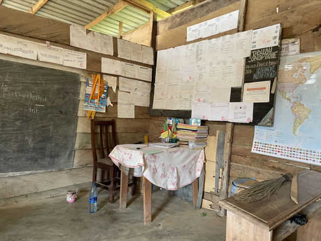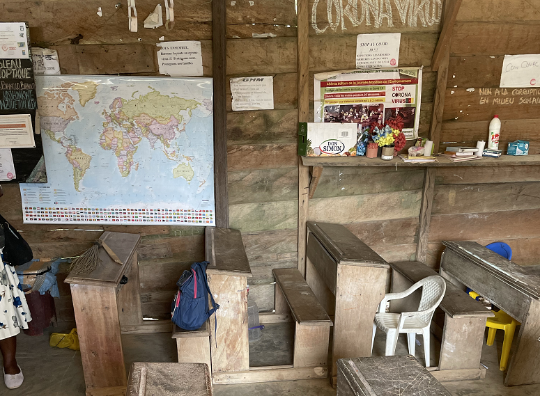 招港國(guó)際公司喀麥隆石場(chǎng)項(xiàng)目地處偏遠(yuǎn)山區(qū),林多地少,環(huán)境惡劣,條件艱苦。Eboundja小學(xué)位于項(xiàng)目部駐地附近,學(xué)校由村民自建,校舍用木板搭建,校內(nèi)只有一名校長(zhǎng)和一位老師,學(xué)校的日常開(kāi)支大多也由周邊村民自發(fā)捐助。