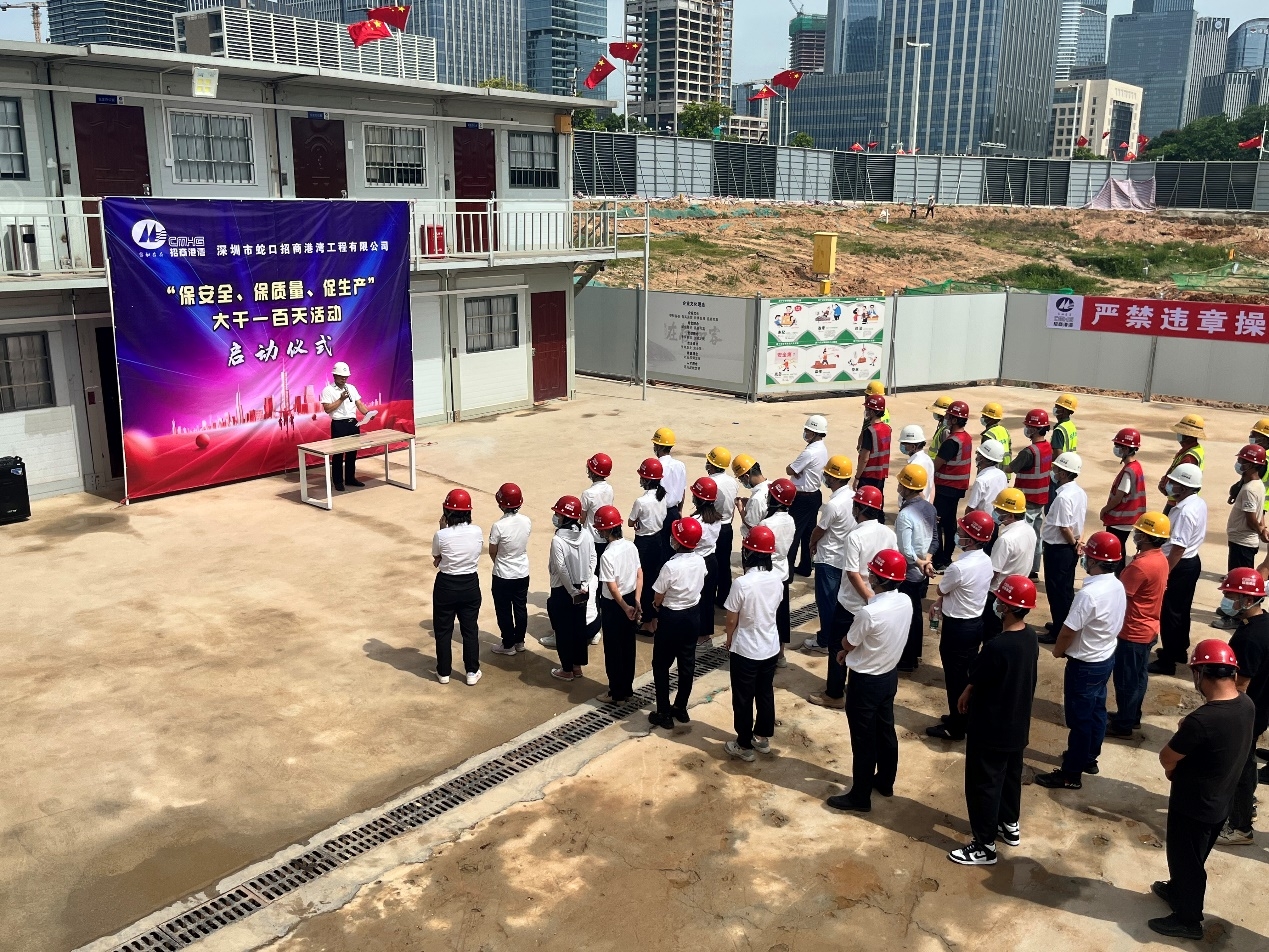 受疫情和市場大環(huán)境的影響,今年以來公司的各項經(jīng)營指標一直處于低位運行,發(fā)展中遇到的困難、壓力皆為歷年之最。經(jīng)過公司主要領導和經(jīng)營部門的不懈努力,9月份新中標、新開工的項目日益增多,公司經(jīng)營狀況出現(xiàn)了良好的轉機。為牢牢把握這來之不易的轉機,鞏固公司回穩(wěn)向好勢頭,9月28日上午,深圳市蛇口招商港灣工程有限公司在前海前灣基坑項目舉行“保安全、保質量、促生產(chǎn)”大干一百天活動啟動儀式。