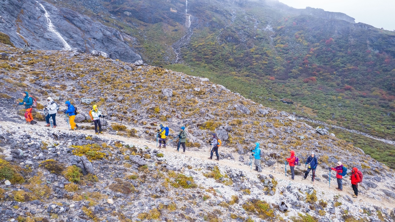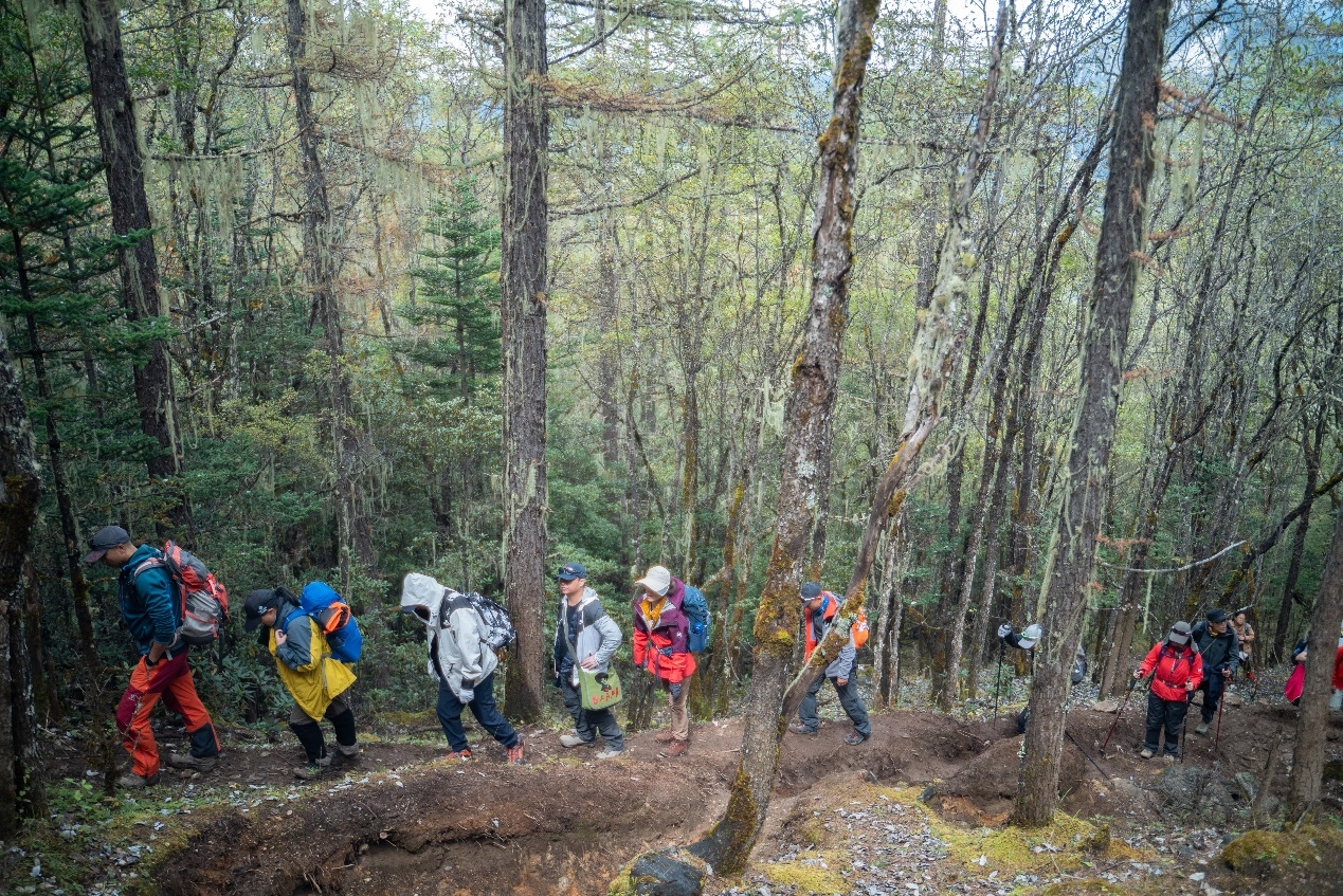 10月6日,登山隊(duì)從哈巴村出發(fā)到達(dá)海拔4100米的大本營(yíng)。