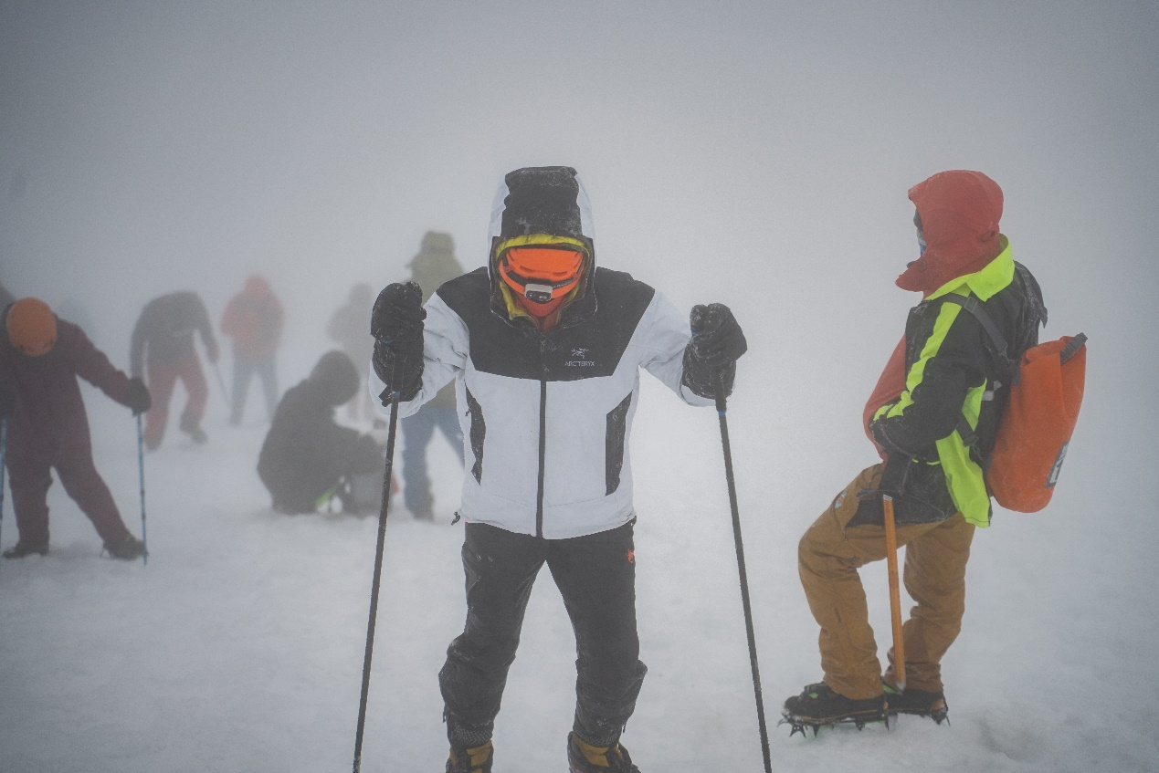 風(fēng)夾雨的的惡劣天氣下沖頂