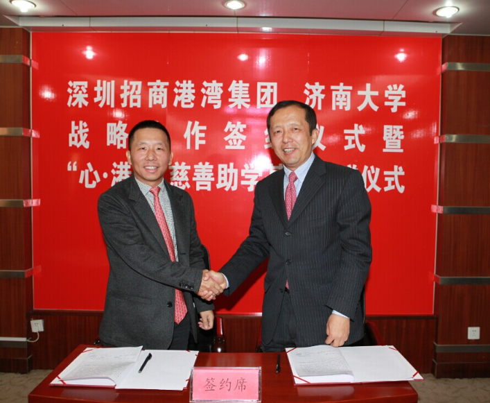 隨后,程新校長和劉??偛梅謩e代表雙方在《濟南大學 深圳市招商港灣集團有限公司戰(zhàn)略合作協(xié)議書》上簽字。根據(jù)協(xié)議,雙方將本著優(yōu)勢互補、互惠互利、長期合作的原則,在設立慈善助學基金,提供智力、信息和技術支持,支持科研項目、創(chuàng)新創(chuàng)業(yè)、學生實訓、就業(yè),建立互動交流機制,持續(xù)推進戰(zhàn)略合作等方面加強合作。