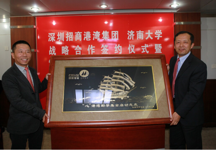 簽約儀式后,雙方舉行了“心?港灣”慈善助學基金捐贈暨啟動儀式。校黨委書記、濟南大學教育發(fā)展基金會理事長范躍進代表學校接受了深圳市招商港灣集團有限公司捐贈的100萬元的慈善助學基金及紀念品。深圳招商港灣集團副總裁徐健詳細介紹了“心?港灣”慈善助學基金設立的初衷和運作模式。