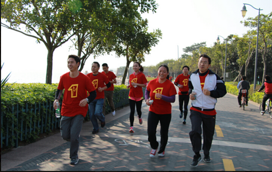 活動(dòng)當(dāng)天9點(diǎn)不到,各單位同事便已云集在起跑點(diǎn)上“摩拳擦掌”,展開(kāi)熱身運(yùn)動(dòng),準(zhǔn)備向2015年的新目標(biāo)奔跑……冬日里暖暖的陽(yáng)光透過(guò)微微的海風(fēng)輕撫在我們身上,在起跑點(diǎn)上的同事早已換上統(tǒng)一紅色運(yùn)動(dòng)衫、貼上小國(guó)旗,頓時(shí)讓整個(gè)活動(dòng)氣氛激情澎湃起來(lái)。為了科學(xué)合理的運(yùn)動(dòng),避免在跑步過(guò)程中對(duì)身體產(chǎn)生不適,由徐健副總裁親自擔(dān)任熱身教練,指導(dǎo)大家進(jìn)行跑前熱身運(yùn)動(dòng)。熱身完畢,全體同事個(gè)個(gè)躍躍欲試。隨著 “奔跑吧,招港”一聲吶喊,80余張可愛(ài)的笑臉,如離弦之箭向目標(biāo)奔去。