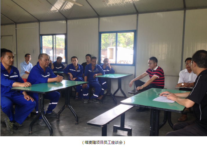 關注海外員工的工作及生活情況也是萬總此行考察的重點。期間,萬總深入項目現(xiàn)場和員工宿舍,與基層員工進行了面對面的交流,聆聽基層員工的訴求,特別是對公司在管理過程中的意見和建議,及時解決員工工作和生活中的困難。
