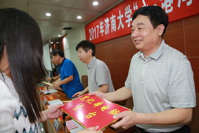 濟(jì)南大學(xué)教務(wù)處處長(zhǎng)黃加棟、學(xué)生工作處副處長(zhǎng)孫喜武分別宣讀了第一期“濟(jì)南大學(xué)-深圳港創(chuàng)創(chuàng)新實(shí)驗(yàn)班”學(xué)生及獲得2017年“心·港灣”慈善助學(xué)金學(xué)生名單,出席儀式的領(lǐng)導(dǎo)、嘉賓為“港創(chuàng)創(chuàng)新實(shí)驗(yàn)班”學(xué)生頒發(fā)了筆記本電腦,為2017年“心·港灣”慈善助學(xué)金受資助學(xué)生發(fā)放了助學(xué)金。第一期“港創(chuàng)創(chuàng)新實(shí)驗(yàn)班”學(xué)生、材料科學(xué)與工程學(xué)院李揚(yáng)同學(xué)分享了自己暑假到招港集團(tuán)實(shí)習(xí)的收獲和感悟;物理科學(xué)與技術(shù)學(xué)院殷慧敏同學(xué)代表受資助的學(xué)生,感謝集團(tuán)與學(xué)校的關(guān)愛,表示將不負(fù)期望,努力學(xué)習(xí),回報(bào)學(xué)校、企業(yè)和社會(huì)。