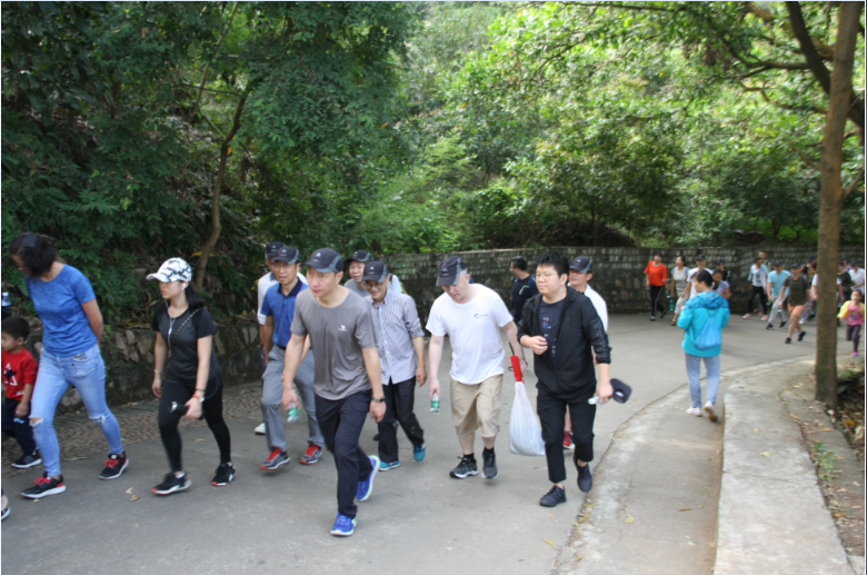 21日上午9:00,隨著一聲令下,登山活動正式開始。參與登山活動的員工勇往直前,沿著預先設定好的登山路線一路向上。登山途中,大家相互激勵鼓舞,攜手并進,充分發(fā)揚了團結拼搏、不畏艱險的優(yōu)良作風。途經(jīng)數(shù)個陡坡,歷經(jīng)幾十分鐘的艱辛路程,所有參與活動的員工全部登上山頂。俯瞰山下的無限風光時,大家頓時忘記了勞累,笑聲不斷,其樂融融。